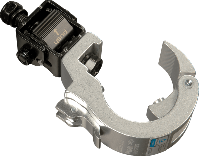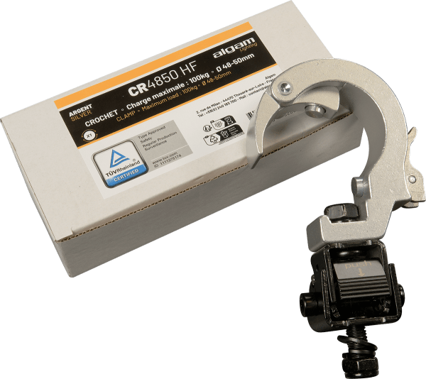 The CR-4850-HF is an aluminum structural hook, ideal for services and installations. Designed to hang on structures with sections of 48 to 50 mm, this hook has a maximum load capacity of 100 kg and a 90° pivot ball joint.