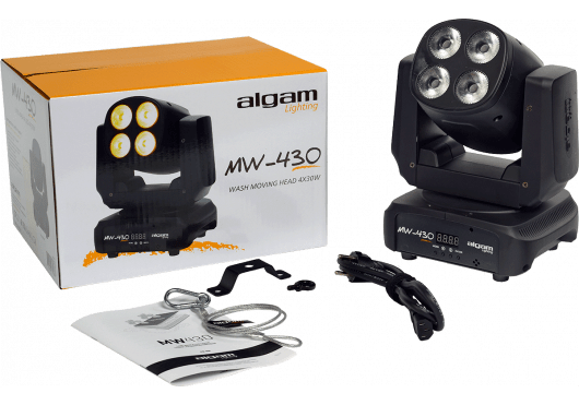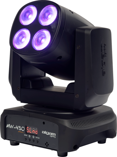 The MW430 lyre is equipped with 4 powerful 30W RGBW LEDs for a rich and dense light output, allowing Wash effects through a palette of vibrant colors. Thanks to its many operating modes and its fast and silent motorization allowing a 540° pan angle and 200° tilt angle, this lyre is capable of covering large spaces with a captivating dynamic, making it a perfect projector for DJs, bars, clubs, or bands. Compact and lightweight at 3 kg, the MW430 is equipped with a base for safe upside-down installations.