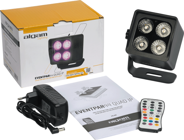 With its discreet lines, compact size, integrated battery, IP65 protection, Wireless DMX, remote control and a well-designed base allowing installation on the ground or on a structure, this EVENT PAR 44 QUAD IP offers unparalleled installation flexibility. Install it wherever you want, pair the machine in WDMX or trigger one of the available modes with the included remote control, and the show can begin!