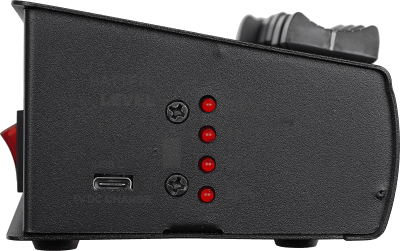 - Battery level indicator: 4 LEDs