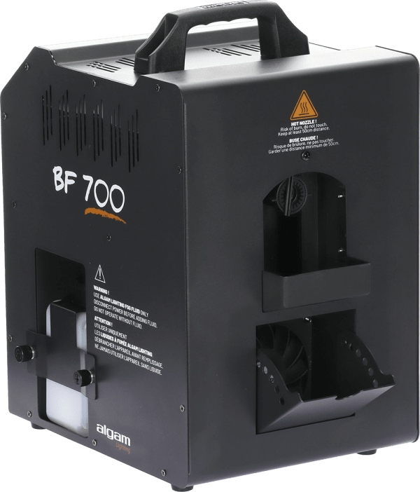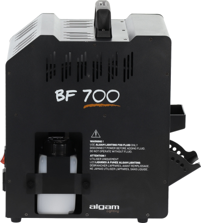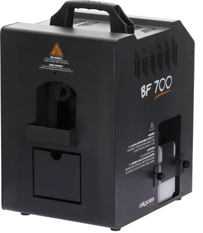 The BF700 is as practical as it is spectacular. Its rapid heat-up time lets you start the show in less than 3 minutes, while its wireless remote control and rear control panel make operation intuitive and seamless. The two easily accessible 50 cl tanks provide over 20 minutes of continuous operation. And for an even more controlled effect, a small variable-angle blower flap located under the bubble generator allows you to precisely direct the flow depending on the situation.