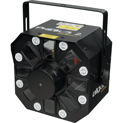 Derby, Strobe, Laser: it's all there. Phebus 2 is a 3-in-1 machine that will keep a dance floor going for hours. Its many internal programmes ensure a variety of rotary effects in different modes. Whether it is the DMX integration, its internal microphone for music detection, or its robust construction, the Phebus 2 will be equally at home in a private setting as in a professional one.