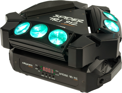 The SPIDER TRI 912 is the ideal dynamic LED lighting system suitable for discos, concerts, and private events. It is easy to install and can be set up in various ways, such as being placed on the floor or suspended upside down. The system consists of three motorized mini-bars that can be adjusted in tilt and each contains three independently adjustable 12W RGBW LEDs. The three mini-bars are cleverly arranged in a triangle shape and are mounted on a motorized axis, enabling quick 360° rotation and impressive beam sweeps, creating a vibrant atmosphere on the dance floor. The lighting system offers built-in automatic and music detection modes for users who prefer a quick setup without having to make tedious adjustments. Additionally, more advanced users can utilize the DMX mode to program their light show precisely.